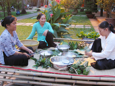 ngày này thường rất vui, các bà, các cô vừa nướng bánh, gói bánh vừa